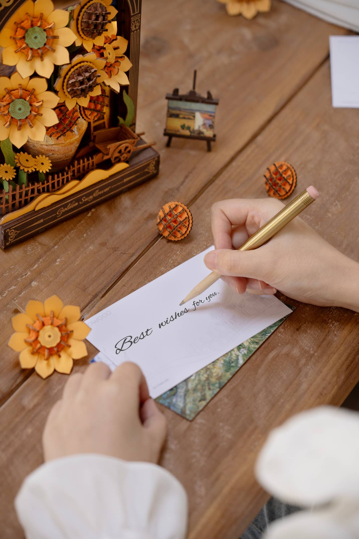 The 3D Wooden Puzzle: Golden Sunflower Wall Art features 266 precisely cut wooden pieces, blending craftsmanship and décor into one relaxing project. This tabletop ornament and night light puzzle comes to life with soft LED ambient lighting, casting a warm, inviting glow that enhances shelves, desks, or bedside tables.