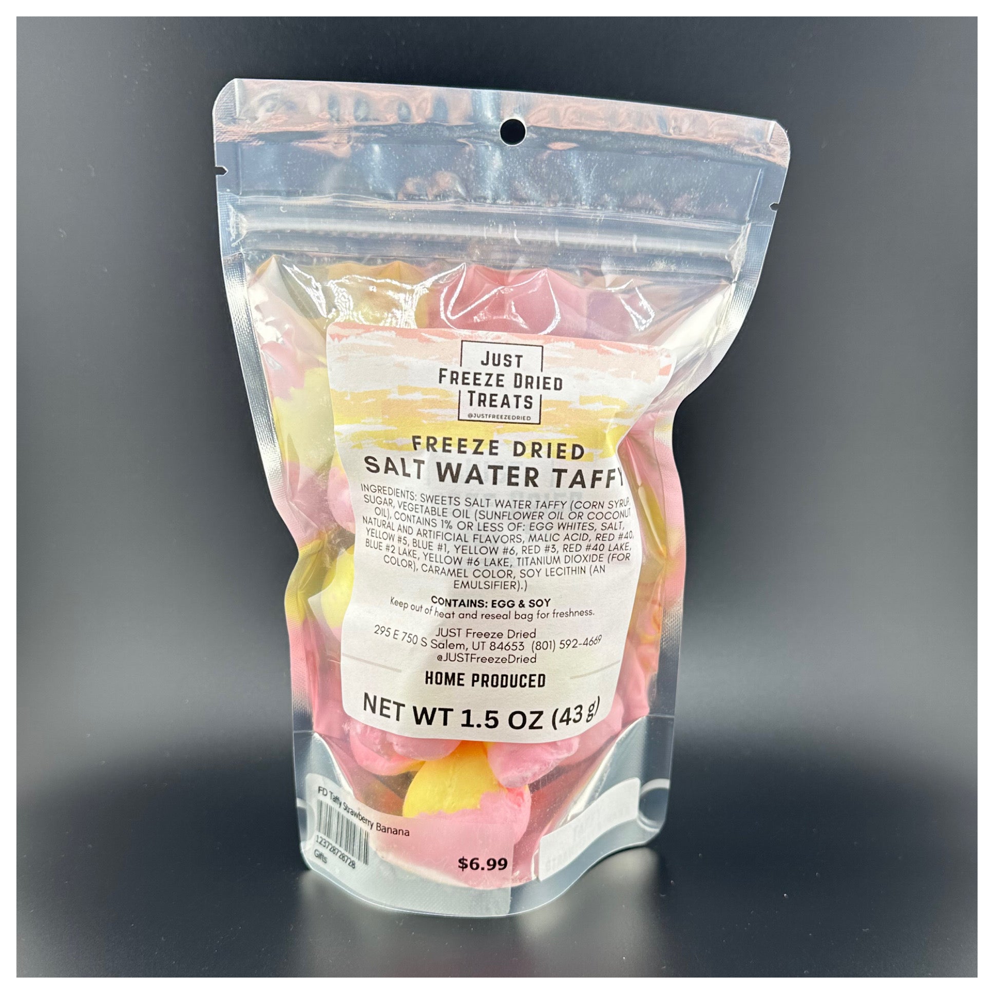 Freeze dried strawberry banana salt water taffy, made by Utah-based company, Just Freeze Dried Treats.